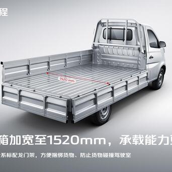 二是装载能力升级。首先,货箱宽度增加到了1520mm,这一点点赞。同时,长箱车型全系标配了龙门架,运输更安全。其次,货箱边板的厚度增加到了5公分,货箱离地高度则调整为了78.5cm,不仅提升了强度,还更利于搬运。最后,3H高刚性车架+8根横梁,以及麦弗逊独立悬挂结构与6片钢板弹簧,主打一个稳。
